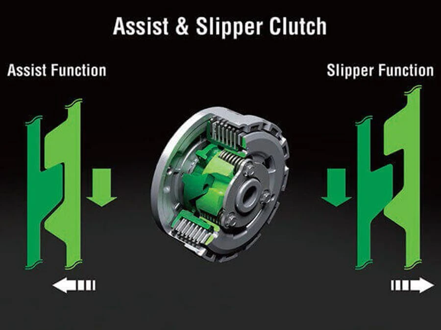 คลัตช์ Assist & Slipper Clutch ใช้ลูกเบี้ยวสองประเภท (ลูกเบี้ยว Assist และลูกเบี้ยว Slipper) ซึ่งมีสองฟังก์ชันที่ไม่มีในคลัตช์มาตรฐาน