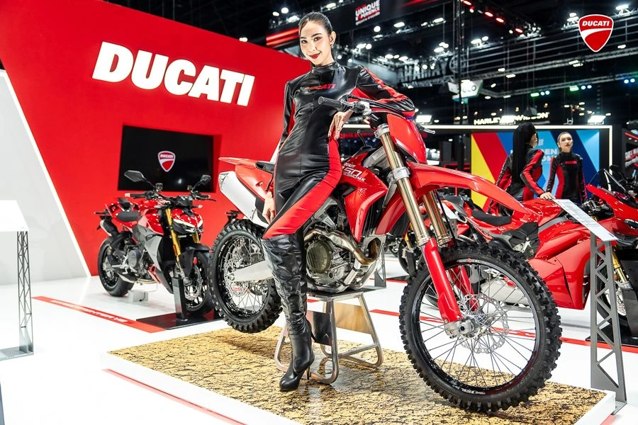 ทางด้าน Desmo 450MX คือการเปิดประตูครั้งแรกของดูคาติสู่โลกโมโตครอส ด้วยเครื่องยนต์สูบเดียว 449 ซีซี ระบบวาล์วแบบ Desmodromic น้ำหนักตัวเพียงราว 104 กิโลกรัม และกำลังที่ตอบสนองฉับไว ทำให้เป็นรถที่ออกแบบมาเพื่อผู้รักสายลุยที่ต้องการสัมผัสเอกลักษณ์ของดูคาติในโลกออฟโรด ยังไม่ประกาศราคาจำหน่าย