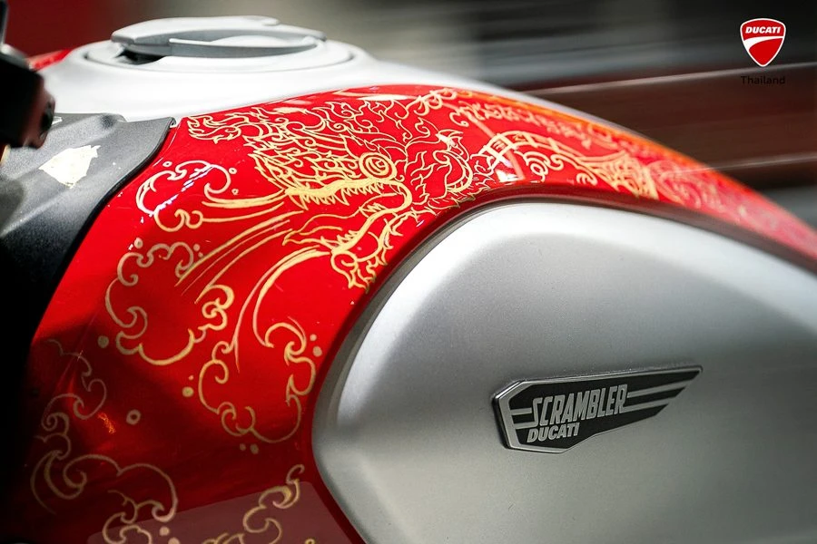 ส่วน Scrambler Thailand Edition รุ่นลิมิเต็ด คือการผสานจิตวิญญาณของ Scrambler เข้ากับศิลปะร่วมสมัยของศิลปินไทย Arjan Neng ซึ่งสร้างสรรค์ลวดลายเฉพาะอย่างประณีตและทรงพลังบนรถรุ่นที่เป็นไอคอนของดูคาติ เป็นรถสะสมที่มีจำนวนจำกัดเหมาะสำหรับผู้ที่ต้องการความพิเศษไม่เหมือนใคร ประกาศราคาจำหน่ายอยู่ที่ 405,000 บาท