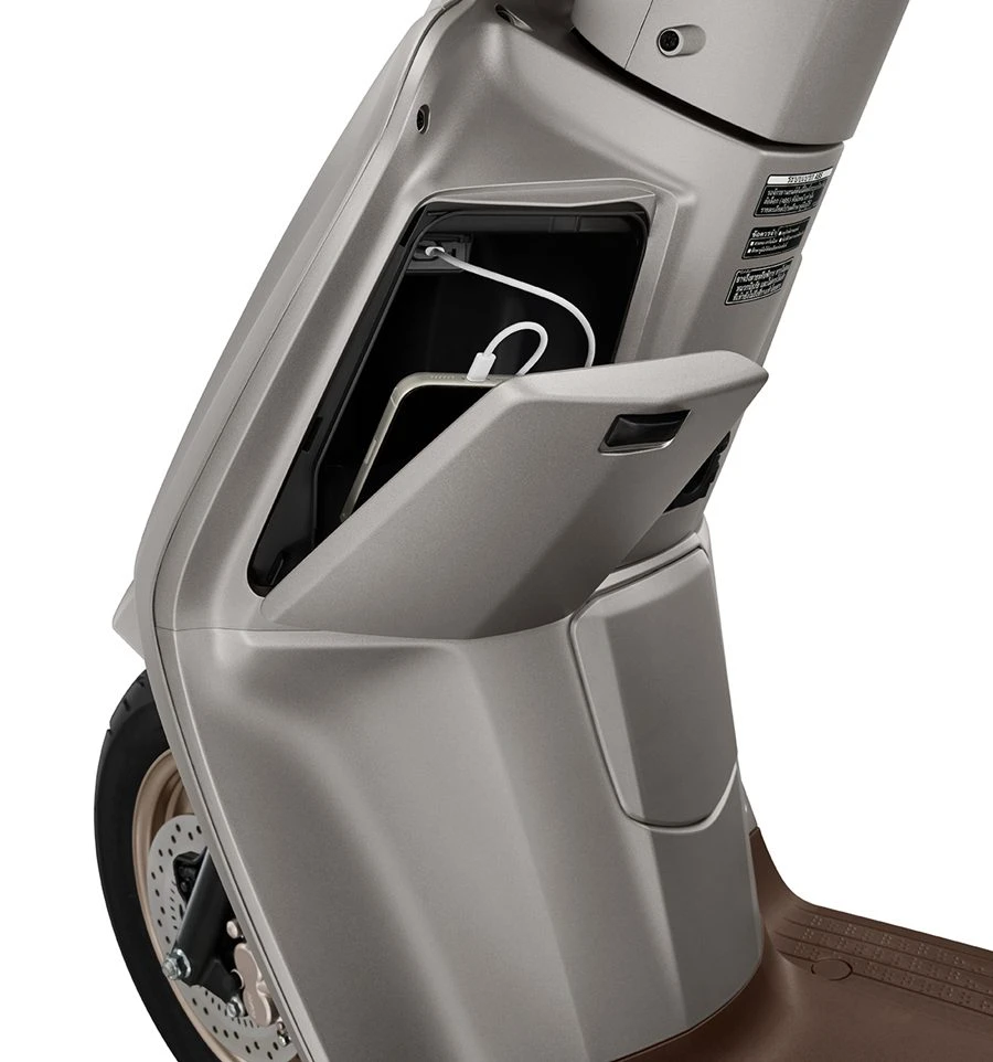 ด้านดีไซน์ New Honda Giorno+ อัปสไตล์เพิ่มความเท่และความทันสมัยมากยิ่งขึ้น ด้วยกรอบไฟหน้าสีดำ ตัดกับโลโก้ Honda อย่างลงตัว ในส่วนของเบาะนั่งเป็นสีน้ำตาล (ในรุ่น ABS) ที่ช่วยเติมความพรีเมียม ผสานกับตัวถัง และมือจับหลังที่เติมสีสันให้โดดเด่นเช่นเดียวกับสีตัวรถ อีกทั้ง Emblem Giorno+ สีรมดำช่วยเสริมความเรียบเท่และมีสไตล์ไปอีกขั้น และไฟ LED Light ใต้ช่องเก็บของที่มาพร้อมความจุ 30 ลิตร ตอบโจทย์ทุกไลฟ์สไตล์การใช้งาน