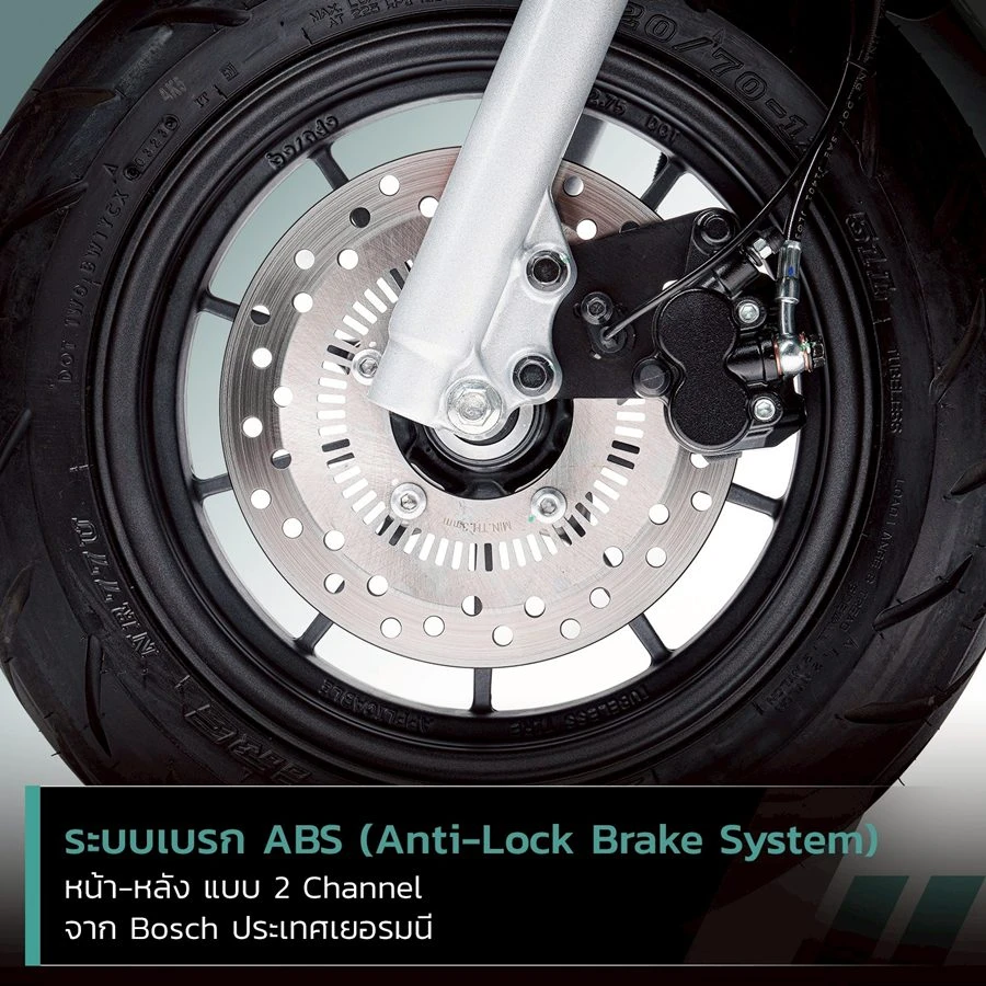 ระบบกันสะเทือนหน้าแบบเทเลสโคปิค พร้อมโช้คอัพหลังเดี่ยว ที่สามารถปรับ Preload ได้ถึง 5 ระดับ มั่นใจทุกครั้งที่ต้องการหยุดรถด้วยดิสก์เบรกหน้า - หลัง ทำงานร่วมกับระบบ ABS (Anti-Lock Brake System) แบบ 2 Channel จาก Bosch ประเทศเยอรมนี ทำให้ผู้ขับขี่สามารถหยุดรถได้อย่างมั่นใจ