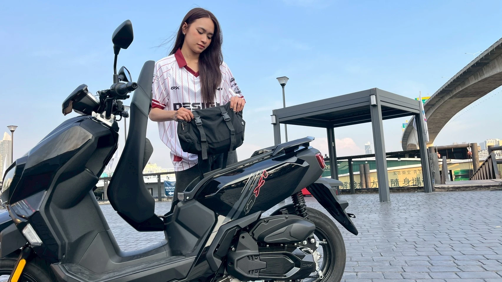 โดย GPX DX1 มีขนาดตัวรถที่เหมาะกับแก้มมากค่ะ ด้วย เบาะ 770 มม. กับน้ำหนักรถ 120 กก. แก้มสามารถยืนได้เต็มเท้า พร้อมขับขี่ได้สบาย ๆ ท่านั่งขับขี่กับระดับแฮนด์ที่พอดี ให้ความรู้สึกสบายและบังคับเลี้ยวง่ายมาก