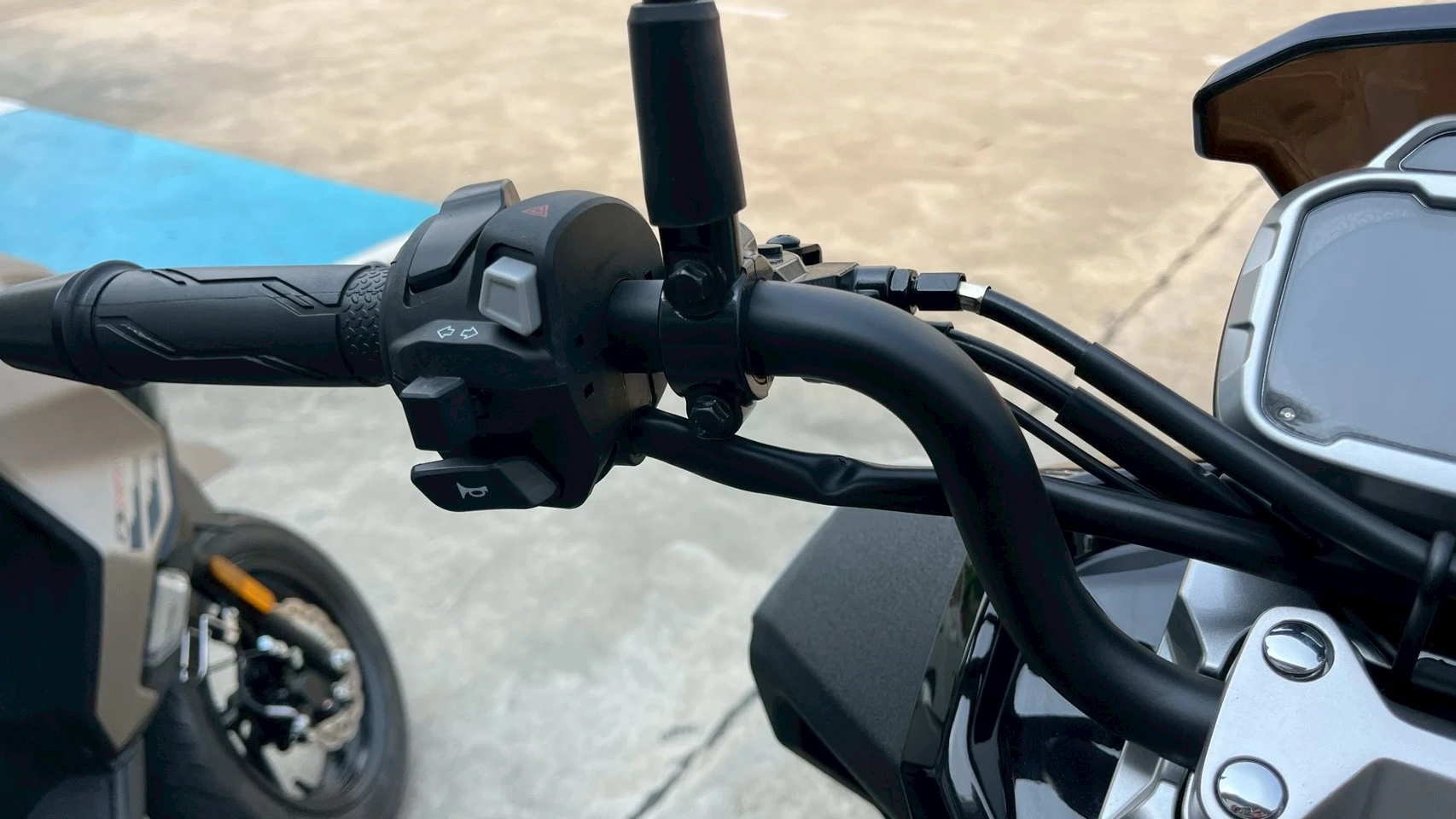 สวิตช์บนแฮนด์ที่สะดวก ง่ายต่อการใช้งานมาก ทั้งสวิตช์เปิด-ปิด ระบบสตาร์ทเครื่องยนต์ ในแบบ “Bigbike” ทางฝั่งขวามือ ฝั่งซ้ายมีสวิตช์ไฟเลี้ยวพอดีกับระดับนิ้วโป้งซ้าย และสวิตช์ไฟฉุกเฉิน แถมยังมีสวิตช์เปิดไฟสูงแบบชั่วคราวที่นิ้วชี้ ใช้งานง่ายมากๆ เลยค่ะ