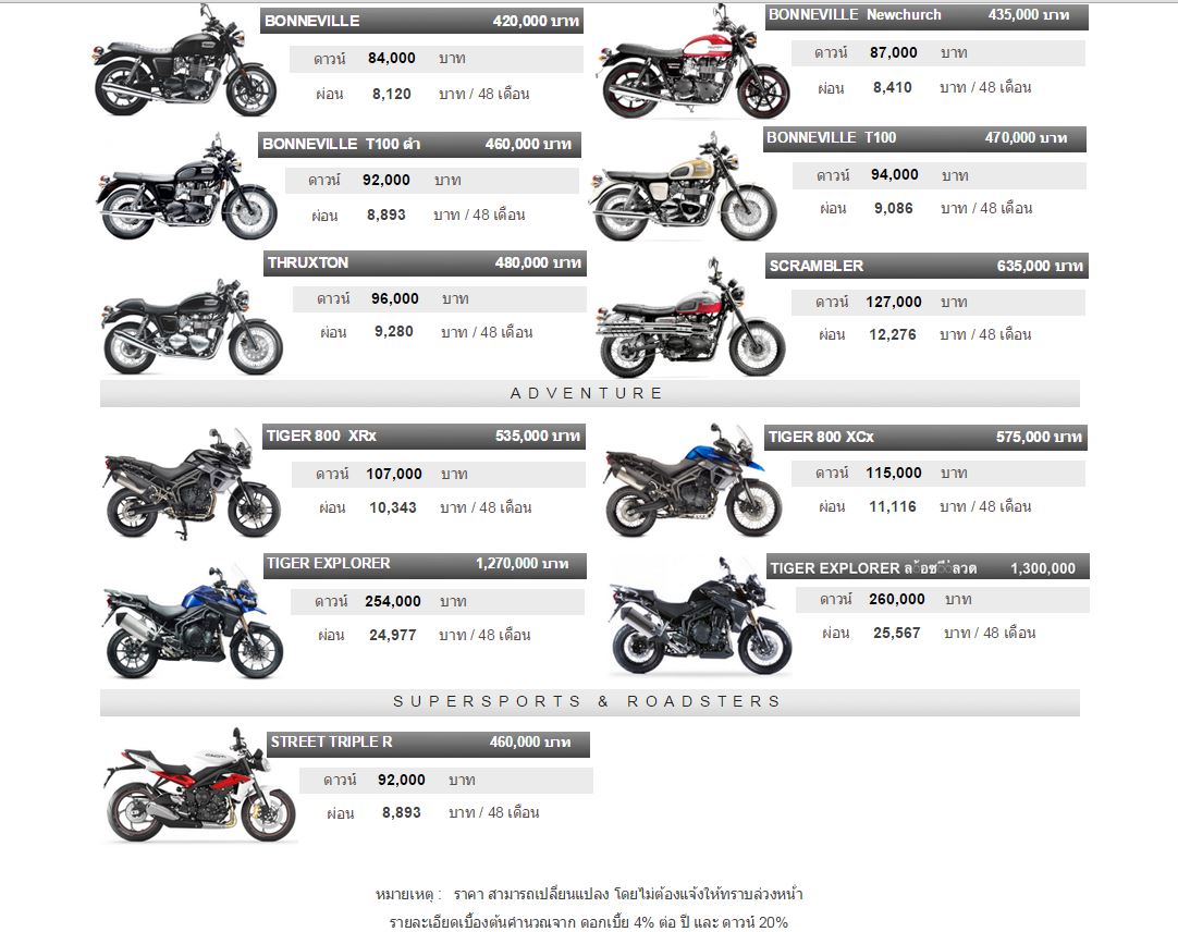 ราคาผ่อนดาวน์ Triumph กว่า 23 รุ่น ให้คุณเป็นเจ้าของได้ง่ายขึ้น