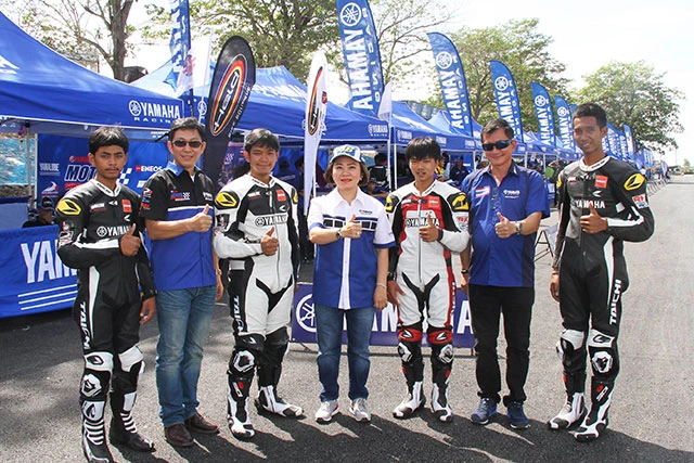 นางสาวจินตนา อุดมทรัพย์ (คนกลาง) ผู้จัดการใหญ่ด้านการค้า พร้อมด้วย นายธีระพงษ์ โอภาสกรกุล (คนที่ 2 จากซ้าย) ผู้จัดการทั่วไปอาวุโสฝ่ายบริการ อะไหล่ และความพึงพอใจลูกค้า และ นายกรธัช แก่นจันทร์ดา (คนที่ 2 จากขวา) ผู้จัดการทั่วไปฝ่ายกิจกรรมการตลาด และกีฬายานยนต์ บริษัท ไทยยามาฮ่ามอเตอร์ จำกัด ร่วมให้กำลังใจนักแข่งซึ่งเป็นนักศึกษาจากสถาบันอาชีวศึกษาที่เข้าร่วมโครงการ Yamaha Moto Challenge 2015 ที่เป็นความร่วมมือระหว่างยามาฮ่ากับสมาคมวิทยาลัยเทคโนโลยีอาชีวศึกษาเอกชนแห่งประเทศไทย พร้อมทำพิธีเปิดการแข่งขันความเร็วสองล้อระดับอาชีวศึกษา รายการ Yamaha Moto Challenge 2015 สนามที่ 1 อย่างเป็นทางการ ณ สนาม ไทยแลนด์ เซอร์กิต นครชัยศรี จ.นครปฐม เมื่อเร็วๆ นี้