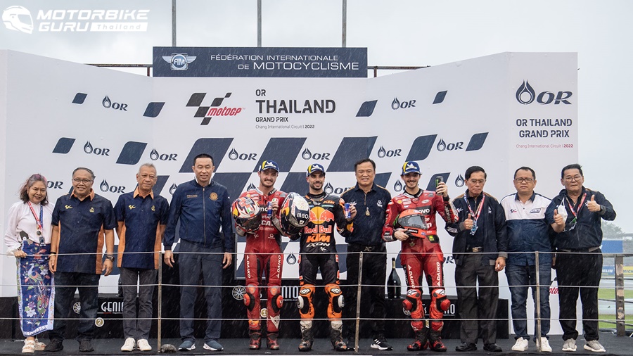 ศึกจักรยานยนต์ทางเรียบรายการใหญ่ที่สุดของโลก โมโตจีพี 2022 สนาม 17 รายการ โออาร์ ไทยแลนด์ กรังด์ปรีซ์ ปิดฉากลงอย่างยิ่งใหญ่ประทับใจแฟนๆ ทั่วโลก ผู้ชมทะลักสู่สนามถึง 178,463 คน อัดแน่นทุกสแตนด์ ภายใต้การลุ้นแชมป์สุดเข้มข้น เกมรุ่นใหญ่ มิเกล โอลิเวียร่า นักบิดโปรตุกีสจาก เรดบูล เคทีเอ็ม แฟ็คตอรี หักปากกาเซียนฝ่าฝนผงาดเป็นผู้ชนะคนใหม่ ส่วน ก้อง-สมเกียรติ จันทรา นักบิดไทยจาก อิเดมิตสึ ฮอนด้า ทีม เอเชีย ขึ้นนำก่อนพลาดล้มดับฝันแฟนชาวไทย ขณะ เคเค-เขมินท์ คูโบะ จาก ยามาฮ่า วีอาร์46 มาสเตอร์ แคมป์ ระเบิดฟอร์มคว้าท็อป 9 ในรุ่น โมโตทู