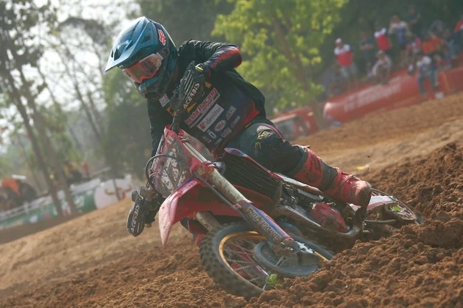 อินทรีแซงค์-กฤษฎา จำรูญจารีต ยอดนักบิดแชมป์ประเทศไทย 4 สมัย โชว์ผลงานเยี่ยมรุ่นท็อปสุดของรายการอย่าง MX250-A บิด Honda CRF250R หมายเลข 17 สังกัดทีม Honda Racing Thailand S Motor Racing ใส่หัวใจนักสู้ไล่แซงคู่แข่งขึ้นคว้าอันดับที่ 2 มาครองได้สำเร็จ