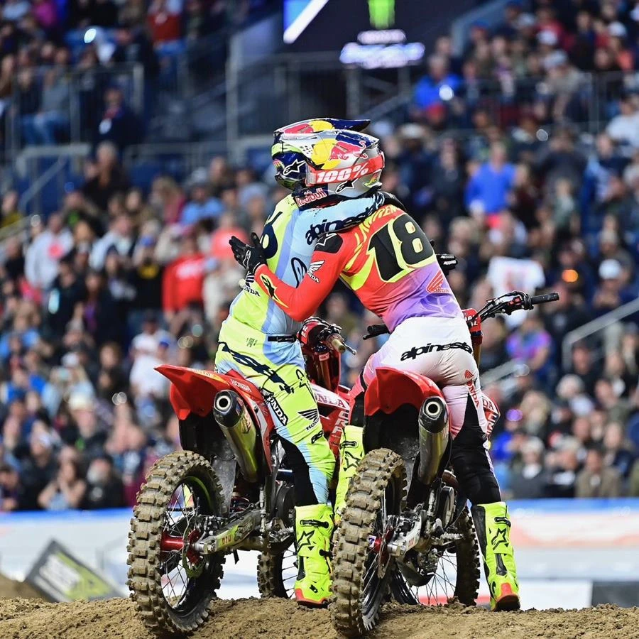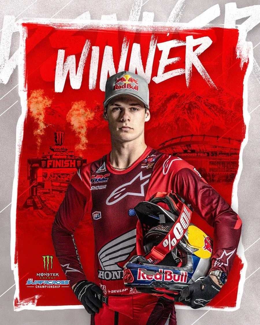 ฮันเตอร์ ลอว์เรนซ์ กับรถแข่ง Honda CRF450R หมายเลข 96 ทำผลงานคว้าโฮลช็อตได้สำเร็จ โดยมี เจ็ตต์ ลอว์เรนซ์ หมายเลข 18 ตามติดเบียดคว้าชัยไปครอง นับเป็นการคว้าชัยครั้งที่ 8 ของฤดูกาลนี้ ขณะที่ ฮันเตอร์ ลอว์เรนซ์ ตามเข้ามาในอันดับที่ 2