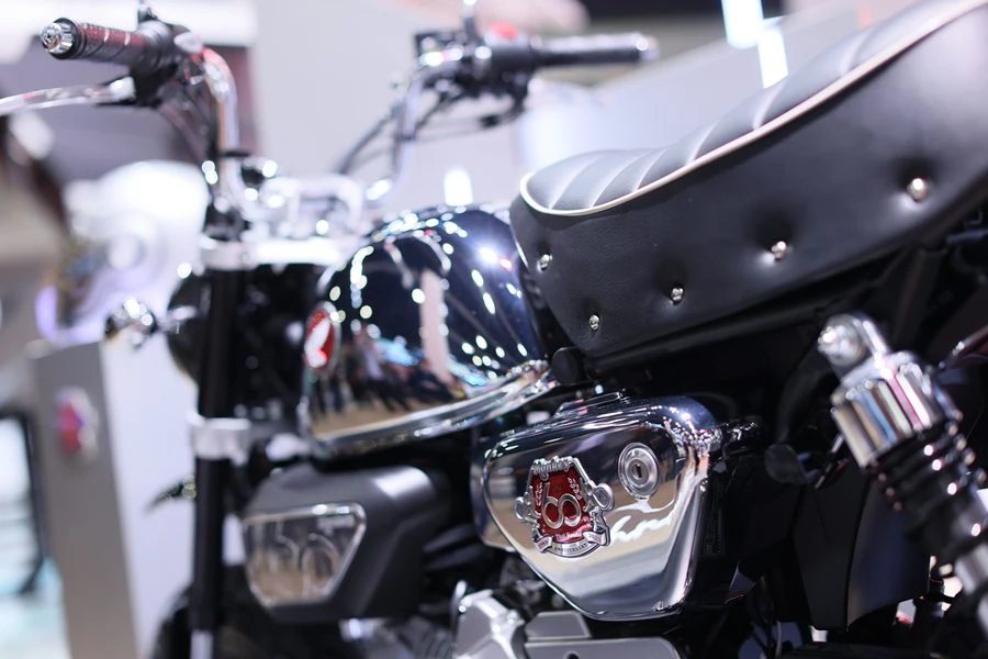 New Honda Monkey Chrome Legacy รุ่น Limited Edition ที่คัสตอมขึ้นมาพิเศษ โดดเด่นด้วยสีโครเมียมทั้งคัน ตั้งแต่ตัวถังน้ำมันโครเมียมสวยสะดุดตาสไตล์กคลาสสิก และฝาครอบข้างที่เป็นโครเมียม ตัดกับเบาะหนังสีดำที่โชว์หมุดสแตนแลสให้ความหรูหราคลาสสิก พร้อมแสดงเอกลักษณ์ความซนในตำนานกับ 3D Soft Emblem โลโก้เจ้าลิงซนครบรอบ 60 ปีไทยฮอนด้า เสริมความลิมิเต็ดด้วย Chrome Edition Serial Number รันเลขตามจำนวนคันที่ผลิต