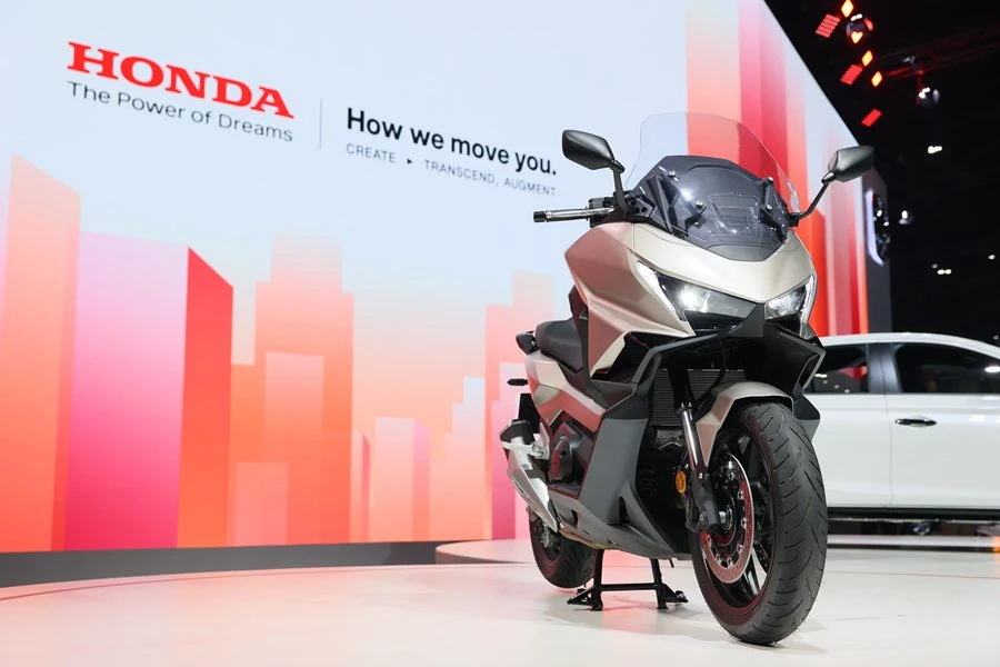 New Honda Forza750 บิ๊กสกู๊ตเตอร์เรือธงที่มาพร้อมสมรรถนะที่เหนือคลาสด้วยเครื่องยนต์ 750 ซีซี OHC 4 วาล์ว 2 สูบเรียง ผสานเทคโนโลยี Dual Clutch Transmission (DCT) เปลี่ยนเกียร์สมูทไม่ต้องกำคลัตช์ ส่งตรงดีเอ็นเอความแรงจากรถบิ๊กไบค์สู่ท้องถนน มาพร้อมหน้าจอแสดงผล TFT ขนาด 5 นิ้ว ปรับดีไซน์ใหม่ให้ตอบโจทย์การมองเห็นที่ชัดเจนยิ่งขึ้น รองรับการเชื่อมต่อกับระบบ Honda RoadSync พร้อมปรับโหมดการขับขี่ได้ถึง 4 โหมด (Standard, Rain, User, Sport) ให้การควบคุมรถมีประสิทธิภาพดียิ่งขึ้น อีกทั้งตอบโจทย์สายทัวร์ริ่งด้วยระบบ Cruise Control ช่วยควบคุมความเร็วอัตโนมัติเหมาะสำหรับการขับขี่ทางไกลและในเมืองได้อย่างดีเยี่ยม มาในดีไซน์โฉมใหม่ สปอร์ต ดุดัน แต่ยังคงความพรีเมียมไว้ได้อย่างลงตัว โฉบเฉี่ยวด้วยไฟหน้า LED โคมคู่ พร้อม Daytime Running Lights (DRL) ให้ความสปอร์ตเต็มขั้นด้วยไฟเลี้ยวแบบ Built-in ให้การขับขี่มั่นใจด้วยล้อหน้าขนาด 17 นิ้ว และล้อหลังขนาด 15 นิ้ว พร้อมโช้กหน้าหัวกลับขนาด 41 มม. ที่ช่วยเพิ่มความนุ่มนวลและมอบการทรงตัวที่มั่นคง รวมถึงกระจกบังลมไฟฟ้าอัตโนมัติขนาดกว้างขึ้นถึง 25% ปรับความสูงได้ถึง 120 มม. New Honda Forza750 พร้อมวางจำหน่าย 3 สีใหม่ ได้แก่ สีน้ำตาล (Mat Warm Ash Metallic) สีดำ (Mat Ballistic Black Metallic) และสีเทา (Iridium Gray Metallic)