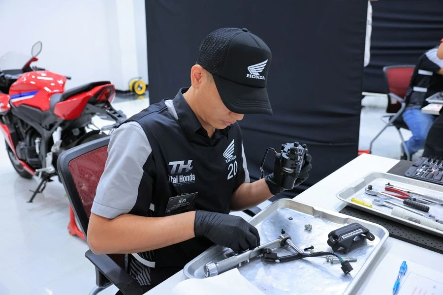 การสอบทฤษฎี : ทดสอบความรู้เกี่ยวกับระบบ SMART Engine เทคโนโลยี PGM-FI ระบบไฟฟ้า เทคโนโลยี eSP+ และมาตรฐานการซ่อมบำรุง รวมถึงการวิเคราะห์ปัญหารถจักรยานยนต์รุ่นใหม่