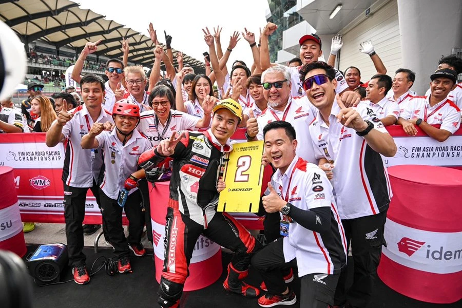 ฮอนด้า เรซซิ่ง ไทยแลนด์ ทีมไทยร้อยเปอร์เซ็นต์ยกระดับผลงาน ในการแข่งขันศึก FIM Asia Road Racing Championship 2025 สนาม 5 ที่สนามเซปัง อินเตอร์เนชั่นแนลเซอร์กิต ประเทศมาเลเซีย โดย ชิพ-นครินทร์ อธิรัฐภูวภัทร์ ทะยาน Honda CBR1000RR-R คว้าโพเดียมบวกแต้มทะยานขึ้นเป็นผู้นำในตารางคะแนนสะสม ลุ้นแชมป์ประจำฤดูกาลในสนามสุดท้ายที่ประเทศไทยกับรุ่นท็อปสุดของรายการ เอเชีย ซูเปอร์ไบค์ 1,000 ซีซี (ASB1000) ขณะที่ ซูเปอร์สปอร์ต 600 ซีซี (SS600) ดาวรุ่งไทย มิกซ์-ธนัช ละอองปลิว & ข้าวกล้อง-จักรีภัทร พฤฒิสาร สอบผ่านเกมยากทำผลงานบวกคะแนนสะสมในตารางแชมเปี้ยนชิพ