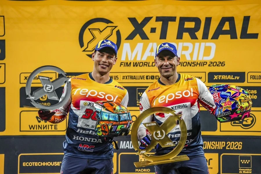 Repsol Honda HRC ทำผลงานสุดเหนือชั้นต่อเนื่อง ในการแข่งขันศึก X-Trial World Championship 2026 สนามที่ 2 มาดริด ประเทศสเปน ด้วยชัยชนะของ โทนี่ โบ ยอดนักบิดไต่เขาชาวสเปนซึ่งเป็นวินเนอร์ครั้งที่ 93 ของเจ้าตัว ตามมาติด ๆ ในอันดับที่ 2 กับผลงานของทีมเมท กาเบียล มาเซลลี่ เป็นการคว้าชัยชนะพร้อมกับกวาดอันดับที่ 1 และ 2 สองสนามติดต่อกัน ในศึก X-Trial World Championship 2026 เมื่อสุดสัปดาห์ที่ผ่านมา