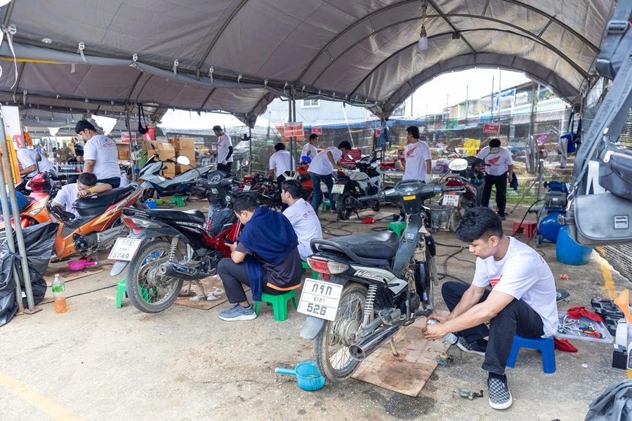 โดยทีมช่างมืออาชีพและอาสาสมัครช่างจากศูนย์บริการฮอนด้าได้เร่งฟื้นฟูรถจักรยานยนต์ทุกคัน ตั้งแต่รถที่ได้รับผลกระทบเล็กน้อยไปจนถึงรถที่เสียหายจนไม่สามารถใช้งานได้ ทีมช่างได้ตรวจสอบระบบสำคัญ ล้างโคลนที่ตกค้างในชิ้นส่วน และเปลี่ยนของเหลวที่ได้รับผลกระทบ เพื่อให้รถกลับมาพร้อมใช้งานอย่างปลอดภัย ทั้งนี้ หากรถที่จมน้ำไม่ได้รับการดูแลอย่างถูกวิธี อาจเกิดปัญหาระยะยาว เช่น ระบบไฟฟ้าลัดวงจร เครื่องยนต์สึกหรอจากความชื้น หรือโคลนอุดตันในระบบต่าง ๆ ซึ่งล้วนเป็นความเสียหายที่จำเป็นต้องได้รับการซ่อมโดยผู้เชี่ยวชาญเท่านั้น