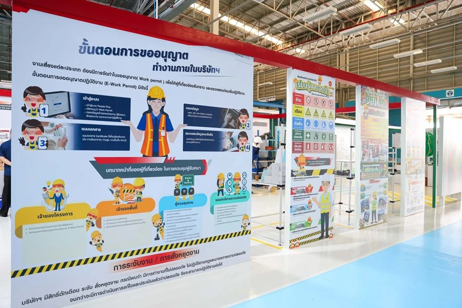 - ฝึกอบรมเชิงปฏิบัติการ (Hands-on Safety Training) เพื่อให้เรียนรู้จากสถานการณ์จริง
