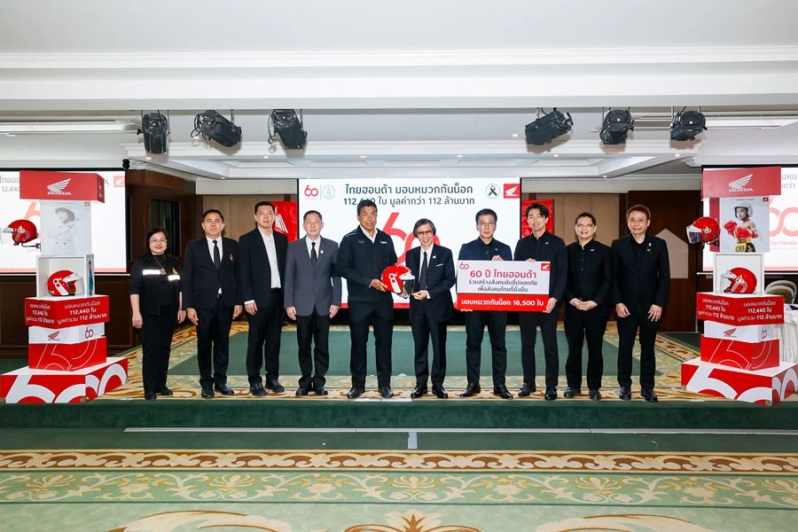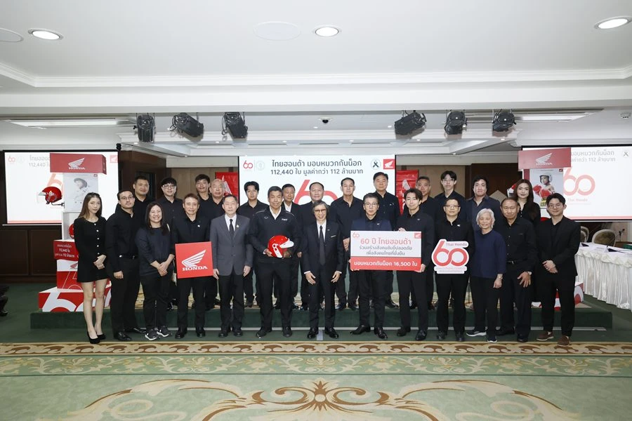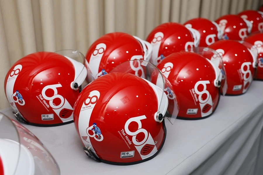 ด้าน นายฮายาโตะ เซกุจิ รองประธานกรรมการบริหาร บริษัท ไทยฮอนด้า จำกัด กล่าวว่า “เนื่องในโอกาสครบรอบ 60 ปี ไทยฮอนด้า บริษัทฯ ได้ดำเนินโครงการภายใต้แนวคิด ‘60 ปี ไทยฮอนด้า ขับขี่ปลอดภัย เพื่อสังคมไทยที่ยั่งยืน’ โดยตั้งใจส่งมอบหมวกกันน็อกจำนวน 60,000 ใบ และได้รับความร่วมมือจากผู้จำหน่ายรถจักรยานยนต์ฮอนด้าทั่วประเทศ ร่วมสมทบเพิ่มเติมอีก 52,440 ใบ ทำให้สามารถส่งมอบหมวกกันน็อกรวมทั้งสิ้น 112,440 ใบ ครอบคลุมครบทั้ง 77 จังหวัดทั่วประเทศ”