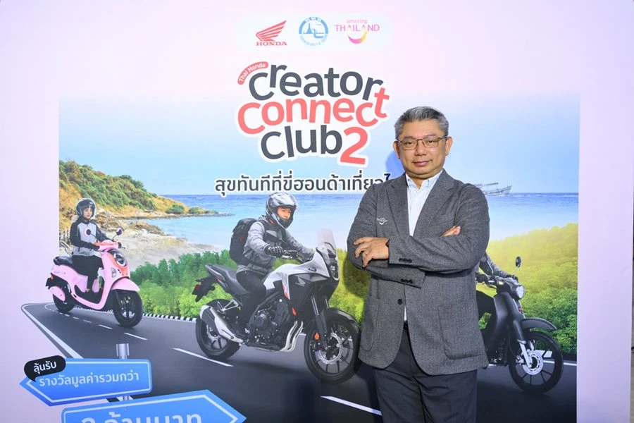 นายนคร วิมลจิตรสอาด ผู้จัดการทั่วไป สายงานการสื่อสารการตลาด บริษัท ไทยฮอนด้า จำกัด กล่าวถึงกิจกรรมนี้ว่า “โครงการ Thai Honda Creator Connect Club เกิดขึ้นจากความมุ่งมั่นของไทยฮอนด้าที่ต้องการผลักดันศักยภาพของคอนเทนต์ครีเอเตอร์ไทยอย่างต่อเนื่อง สำหรับปีที่ 2 นี้ ฮอนด้ามีความยินดีอย่างยิ่งที่ได้ยกระดับโครงการขึ้นอีกขั้น ผ่านความร่วมมือกับการท่องเที่ยวแห่งประเทศไทย (ททท.) เพื่อร่วมผลักดันแคมเปญ ‘สุขทันทีที่เที่ยวไทย’ โดยตั้งใจเปลี่ยนทุกการเดินทางด้วยรถจักรยานยนต์ฮอนด้าให้เป็นเรื่องราวที่สร้างแรงบันดาลใจ ถ่ายทอดเสน่ห์ของเมืองไทยผ่านมุมมองของคนท้องถิ่น พร้อมเชิญชวนครีเอเตอร์ถ่ายทอดความสุขของการท่องเที่ยวในประเทศไทยผ่านแพลตฟอร์มโซเชียลมีเดียต่างๆ นอกเหนือจากโอกาสในการพัฒนาทักษะระดับมืออาชีพจากกูรูแถวหน้าแล้ว โครงการนี้ยังมีบทบาทสำคัญในการส่งต่อความสุขให้ผู้คน กระตุ้นเศรษฐกิจการท่องเที่ยวในประเทศ และตอกย้ำว่าการท่องเที่ยวเมืองไทยสนุกขึ้นได้อย่างแน่นอนเมื่อเดินทางด้วยรถจักรยานยนต์ฮอนด้า”