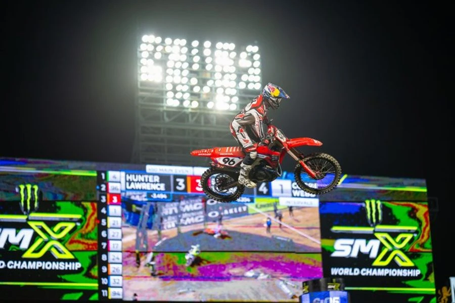 ศึก AMA Supercross 2026 (AMA SX 2026) สนามที่ 3 ดวลคันเร่งกันที่ แองเจิล สเตเดี้ยม สหรัฐอเมริกา(Angel Stadium, United States of America) ในอนาไฮม์ (Anaheim) สหรัฐอเมริกา เมื่อวันที่ 24 มกราคม 2569 ที่ผ่านมา ฮันเตอร์ ลอว์เรนซ์ หมายเลข 96 และยอดรถแข่ง Honda CRF450R เริ่มต้นเกมส์ได้ดีโดยรั้งอันดับที่ 3 หลังจากผ่านโค้งแรก และสามารถแซงคู่แข่งขยับขึ้นมารั้งอันดับที่ 2 ได้อย่างรวดเร็วเพื่อลุ้นแซงขึ้นเป็นผู้นำ