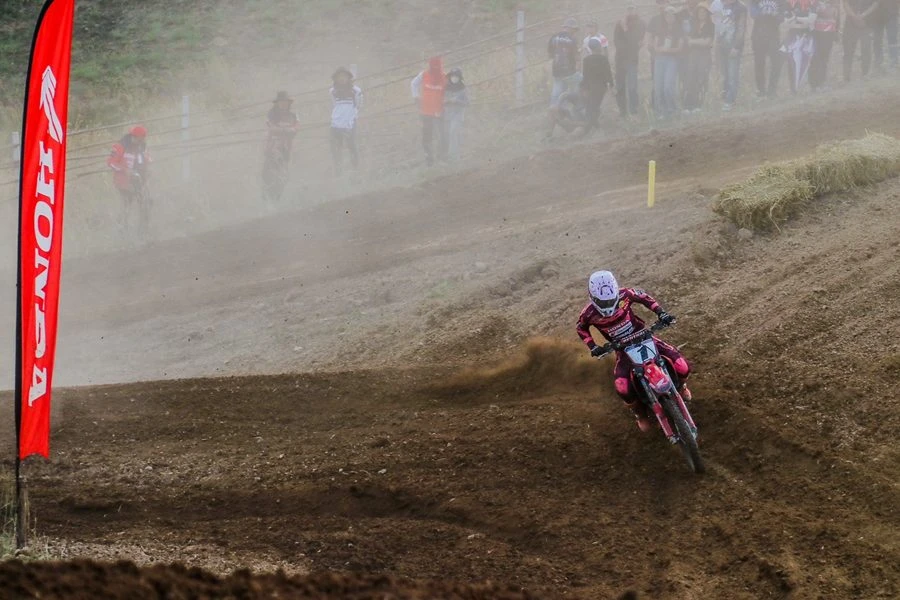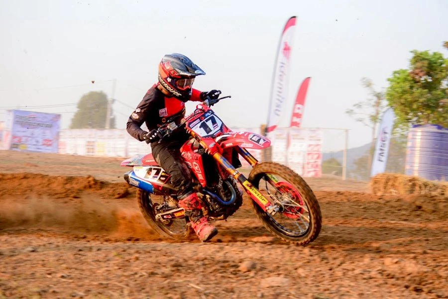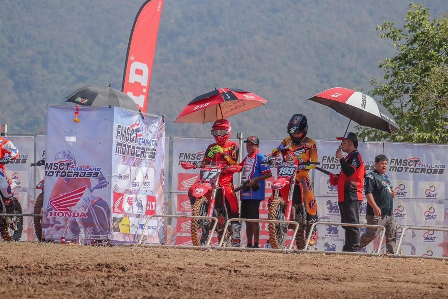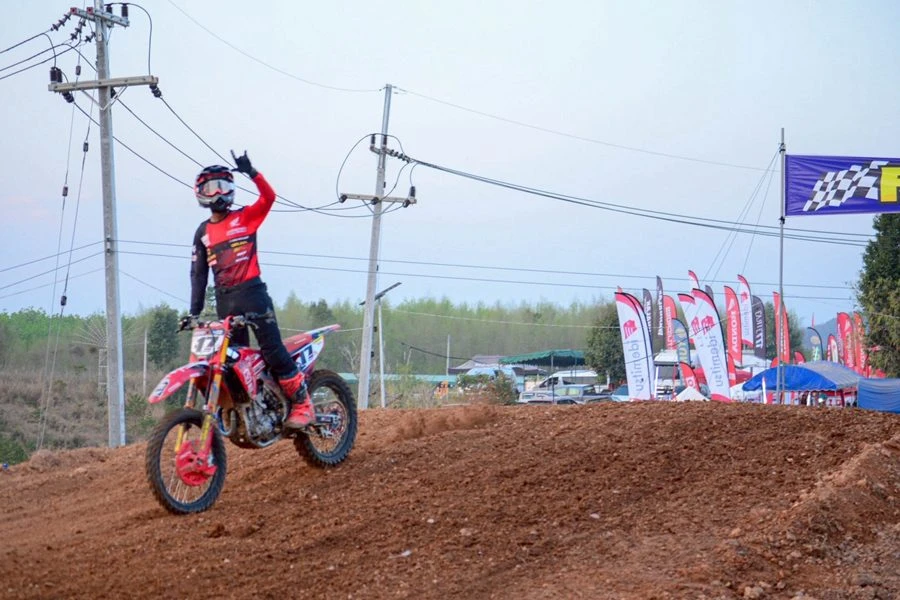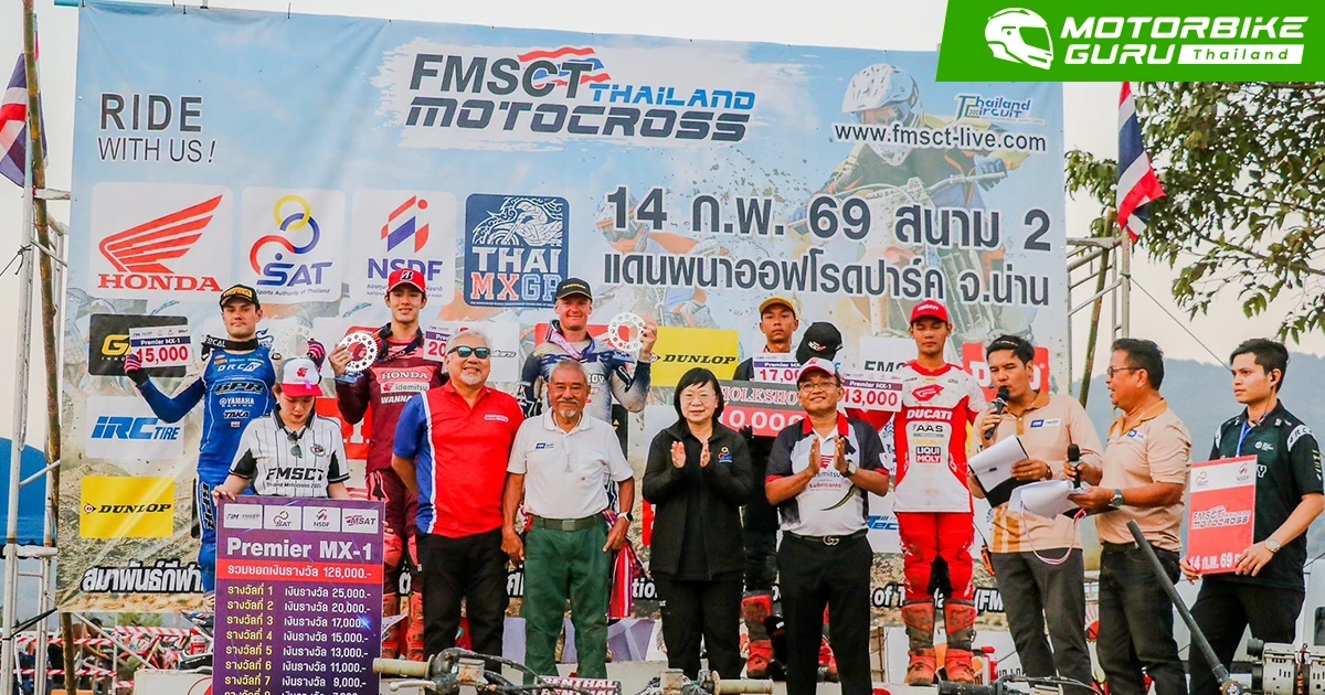 การแข่งขันรายการ FMSCT Thailand Motocross สนาม 2 นักบิดระดับชั้นนำของประเทศในรุ่น Premier MX-1 พบความท้าทายกับคาแร็กเตอร์ของสนาม มีเนินสูงและต้องมุดลงโค้งที่ลึก วัดความแข็งแกร่งของนักบิดและสมรรถนะของรถแข่ง โดยการแข่งขันเริ่มต้นขึ้นเป็นยอดนักบิดฮอนด้า แซงค์-กฤษฎา จำรูญจารีต ทะยานรถแข่ง Honda CRF450R หมายเลข 17 จากทีม Honda17 Kitsada Dirtshop Dunlop Motul บดกับคู่แข่งตั้งแต่โค้งแรกก่อนทะยานคว้าโฮลด์ช็อตไปครองได้สำเร็จ และพยายามฉีกความเร็วออกมาในตำแหน่งผู้นำช่วงต้นเกม
