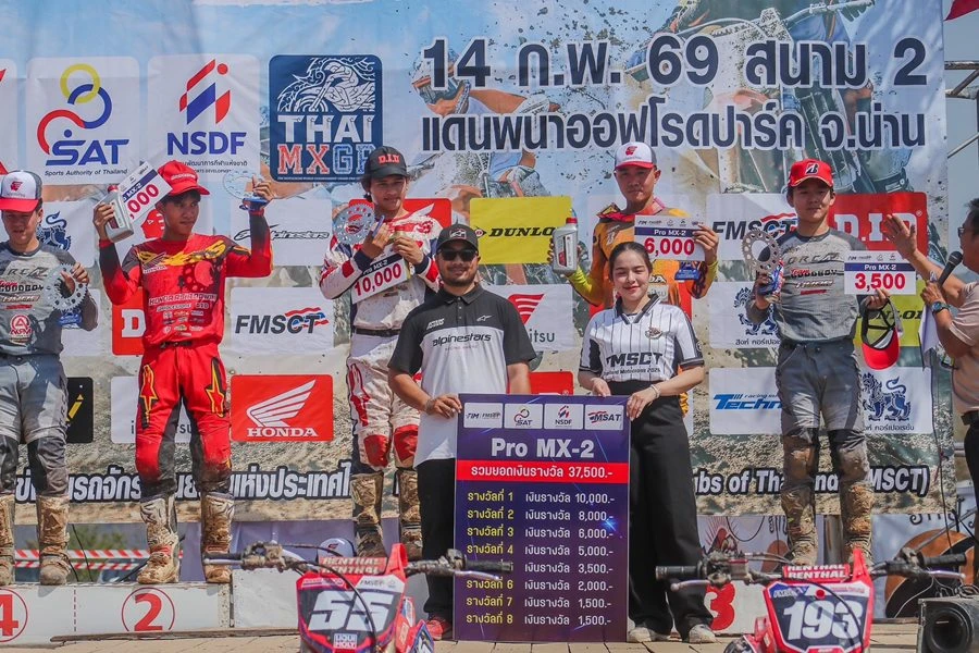 ขณะที่การแข่งขันในรุ่น MX-2 Pro คิ้วท์-พันธกานต์ บุญชาลี หมายเลข 17 บิดยอดรถแข่ง Honda CRF250R ทีม Honda Asia Bowin Idemitsu S Motor ระเบิดผลงานคว้าอันดับที่ 2 มาครอง โดยมี ไตรตั้น-เตโชดม มีแสง หมายเลข 193 จากทีม Honda Racing Thailand Idemitsu Wannalak Motorsport ตามมาในอันดับที่ 3 บนโพเดียม