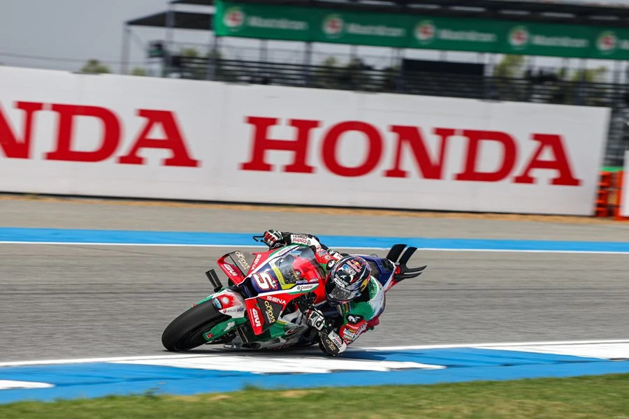 “ลูก้า มารินี” ยอดนักบิดอิตาเลียนจาก ฮอนด้า เอชอาร์ซี คาสตรอล เปิดหัวซ้อมแรกของศึก โมโตจีพี 2026 สนามแรก “พีที กรังด์ปรีซ์ ออฟ ไทยแลนด์” อย่างยอดเยี่ยม ด้วยการควบรถแข่ง Honda RC213V ทะยานรั้งท็อปเท็น หลังผ่านการลงสนามครั้งแรกของสุดสัปดาห์นี้ ที่ สนามช้าง อินเตอร์เนชั่นแนล เซอร์กิต จ.บุรีรัมย์ เมื่อช่วงเช้าวันศุกร์ที่ 27 กุมภาพันธ์ที่ผ่านมา