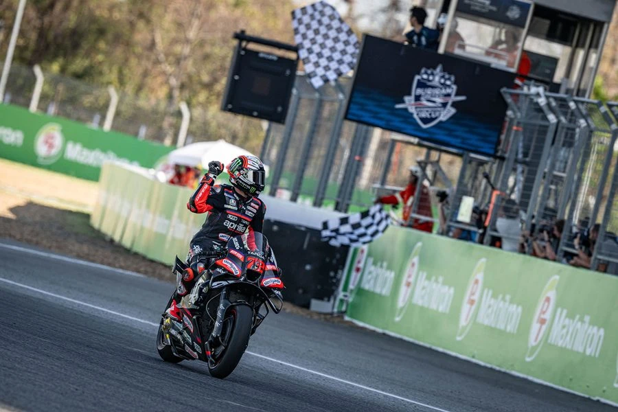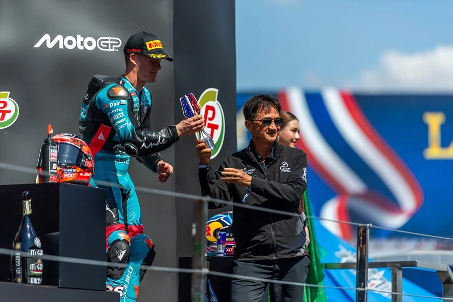ศึกมอเตอร์สปอร์ตสองล้อเบอร์หนึ่งของโลก “โมโตจีพี” ดวลความเร็วสนามแรก ที่ประเทศไทย ภายใต้ชื่อรายการ “พีที กรังด์ปรีซ์ ออฟ ไทยแลนด์” กระหึ่มโลก ด้วยเกมสุดเร้าใจ มาร์โก เบซเซ็คคี ดาวบิดอิตาเลียนจาก อพริเลีย เรซซิ่ง แก้ตัวสำเร็จนำม้วนเดียวจบผงาดคว้าชัยประเดิมฤดูกาลใหม่เหนือ เปโดร อคอสต้า นักบิดสแปนิชจาก เคทีเอ็ม ขณะ มาร์ค มาร์เกซ แชมป์โลกคนปัจจุบันจาก ดูคาติ ดวงแตกยางระเบิดไม่จบเรซ โดยโมโตจีพี สนามประเทศไทยในครั้งนี้ เป็นปีที่ ทำลายสถิติ (Break Records ) ผู้ชมสูงสุดกว่าทุกปี จำนวนกว่า 228,228 คน