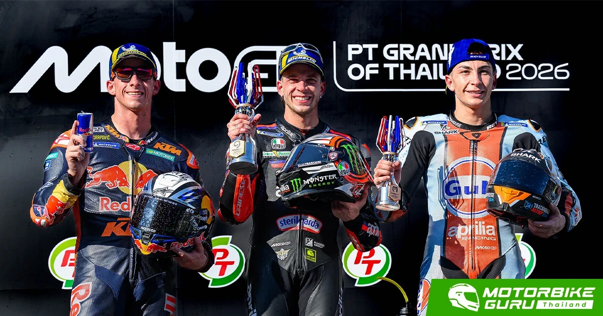 ศึกมอเตอร์สปอร์ตสองล้อเบอร์หนึ่งของโลก “โมโตจีพี” ดวลความเร็วสนามแรก ที่ประเทศไทย ภายใต้ชื่อรายการ “พีที กรังด์ปรีซ์ ออฟ ไทยแลนด์” กระหึ่มโลก ด้วยเกมสุดเร้าใจ มาร์โก เบซเซ็คคี ดาวบิดอิตาเลียนจาก อพริเลีย เรซซิ่ง แก้ตัวสำเร็จนำม้วนเดียวจบผงาดคว้าชัยประเดิมฤดูกาลใหม่เหนือ เปโดร อคอสต้า นักบิดสแปนิชจาก เคทีเอ็ม ขณะ มาร์ค มาร์เกซ แชมป์โลกคนปัจจุบันจาก ดูคาติ ดวงแตกยางระเบิดไม่จบเรซ โดยโมโตจีพี สนามประเทศไทยในครั้งนี้ เป็นปีที่ ทำลายสถิติ (Break Records ) ผู้ชมสูงสุดกว่าทุกปี จำนวนกว่า 228,228 คน