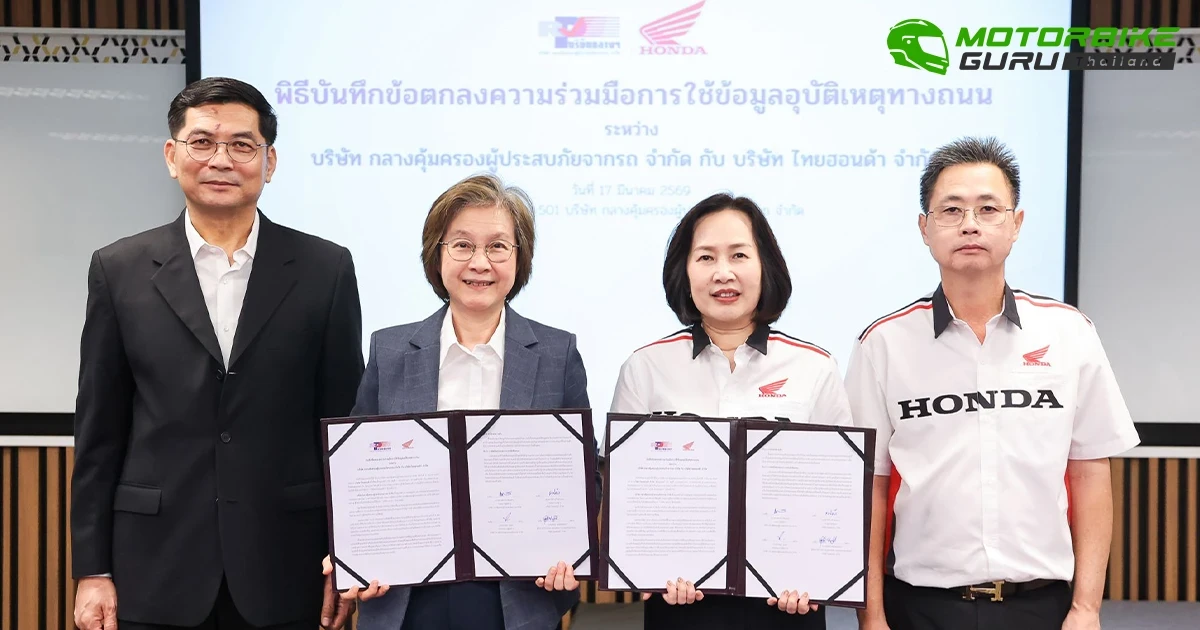 ในการนี้ นางสาวิตรี แก้วพวงงาม กรรมการบริหาร บริษัท ไทยฮอนด้า จำกัด เป็นตัวแทนร่วมลงนามกับ นางสาวพรรณี ปิติกุลตัง กรรมการผู้จัดการ บริษัท กลางคุ้มครองผู้ประสบภัยจากรถ จำกัด เมื่อวันที่ 17 มีนาคม 2569 ณ ห้องประชุม 501 บริษัท กลางคุ้มครองผู้ประสบภัยจากรถ จำกัด ความร่วมมือครั้งนี้ยังเปิดโอกาสให้เกิดการแลกเปลี่ยนองค์ความรู้และบูรณาการทำงานระหว่างหน่วยงานที่เกี่ยวข้อง ซึ่งจะช่วยต่อยอดไปสู่การออกแบบมาตรการด้านความปลอดภัย การพัฒนาหลักสูตรอบรมทักษะการขับขี่ รวมถึงการสื่อสารรณรงค์ที่ตอบโจทย์พฤติกรรมผู้ใช้รถจักรยานยนต์ในปัจจุบันได้อย่างมีประสิทธิภาพมากยิ่งขึ้น