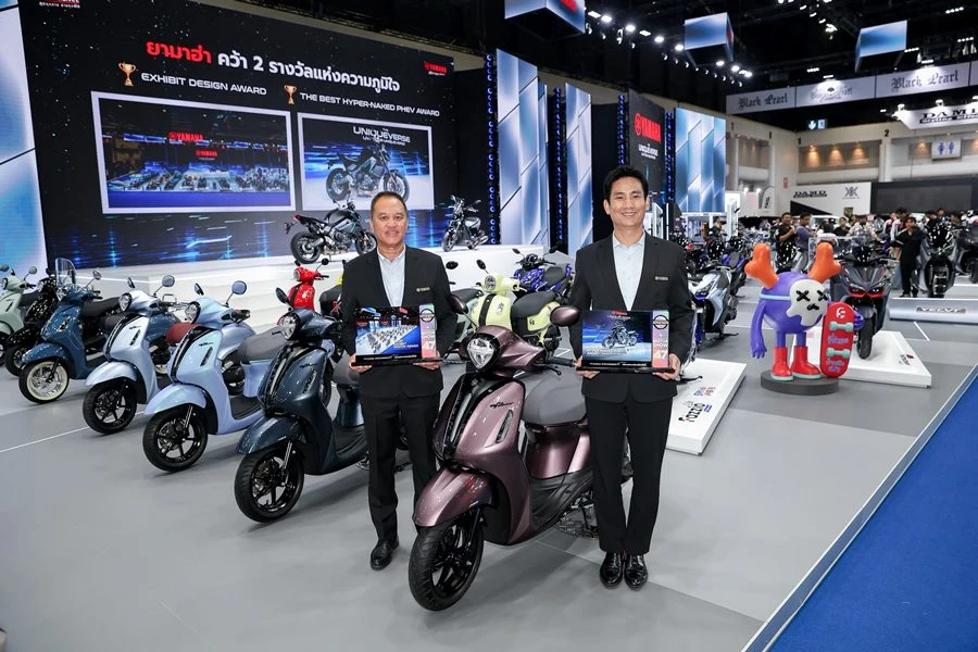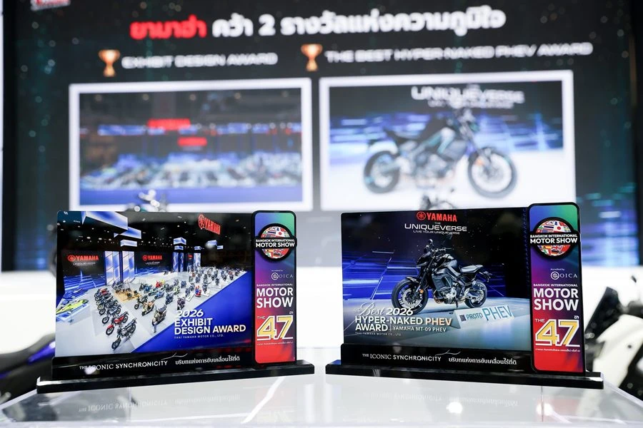 บริษัท ไทยยามาฮ่ามอเตอร์ จำกัด สร้างความสำเร็จอย่างต่อเนื่อง คว้า 2 รางวัลใหญ่จากเวที บางกอก อินเตอร์เนชั่นแนล มอเตอร์โชว์ ครั้งที่ 47 ได้แก่ รางวัล EXHIBIT DESIGN AWARD การออกแบบบูทยอดเยี่ยม ซึ่งยามาฮ่าคว้ารางวัลนี้ต่อเนื่องเป็นปีที่ 20 และรางวัล THE BEST HYPER-NAKED PHEV AWARD จากรถต้นแบบ YAMAHA PROTO PHEV ตอกย้ำศักยภาพด้านดีไซน์และนวัตกรรมแห่งอนาคตของยามาฮ่า
