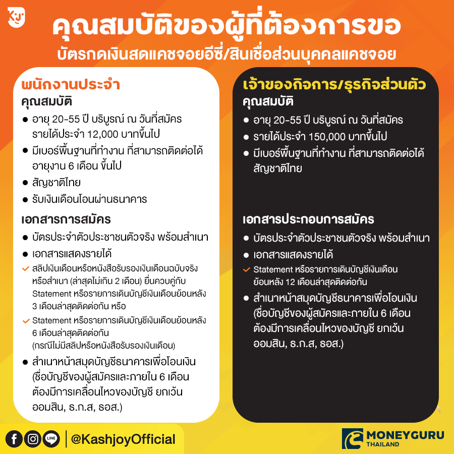 คุณสมบัติของผู้ที่ต้องการขอสินเชื่อบัตรกดเงินสดแคชจอยอีซี่ และสินเชื่อส่วนบุคคลแคชจอย