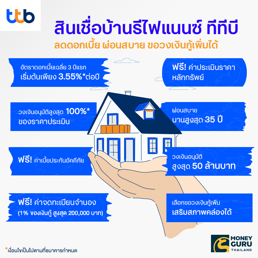 สนใจสมัคร "สินเชื่อบ้านรีไฟแนนซ์ ทีทีบี" สินเชื่อที่ตอบโจทย์ ได้จบ ครบทุกความต้องการ คลิกเลย!