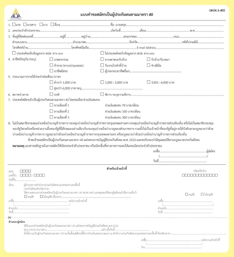 ตัวอย่างแบบคำขอสมัครผู้ประกันตนตามมาตรา 40