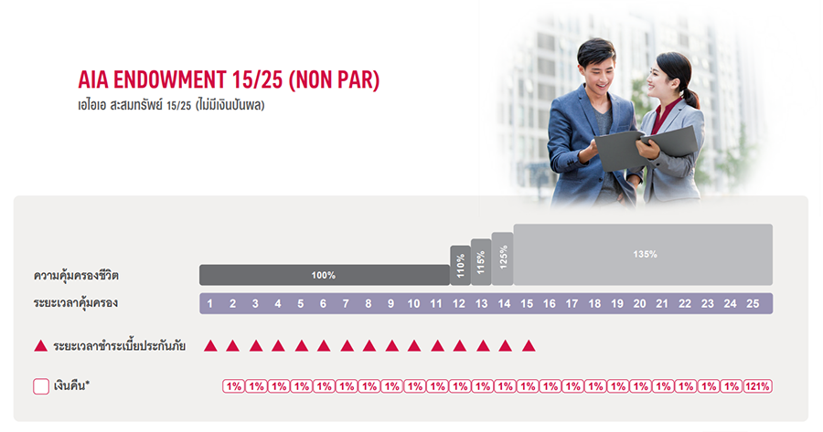 ประกันสะสมทรัพย์ 15/25 (NON PAR) ของ AIA ซื้อได้ผ่านช่องทางตัวแทน แผนนี้ระยะค่อนข้างยาวหน่อย เหมาะกับคนที่วางแผนเกษียณ หรือเก็บเงินก้อนใหญ่