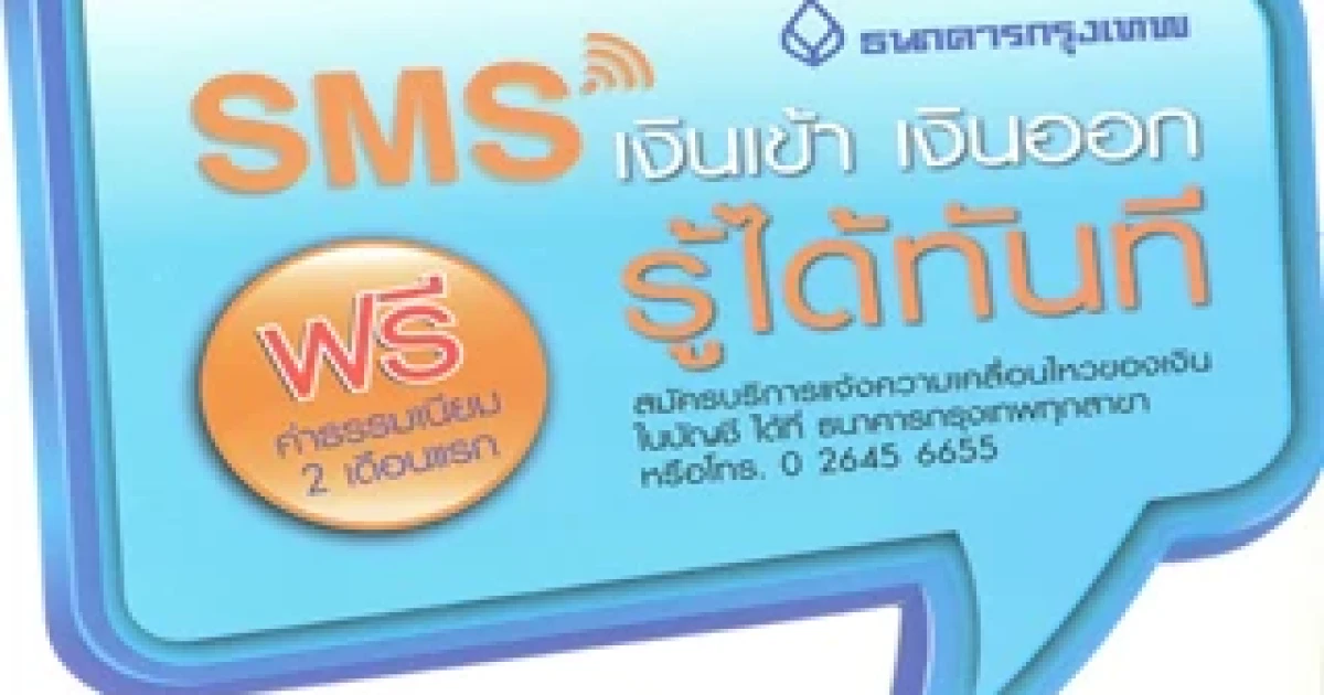 สมัครบริการ SMS จากธ.กรุงเทพ เงินเข้าเงินออกรู้ได้ทันที ฟรี! ค่าธรรมเนียม 2 เดือนแรก