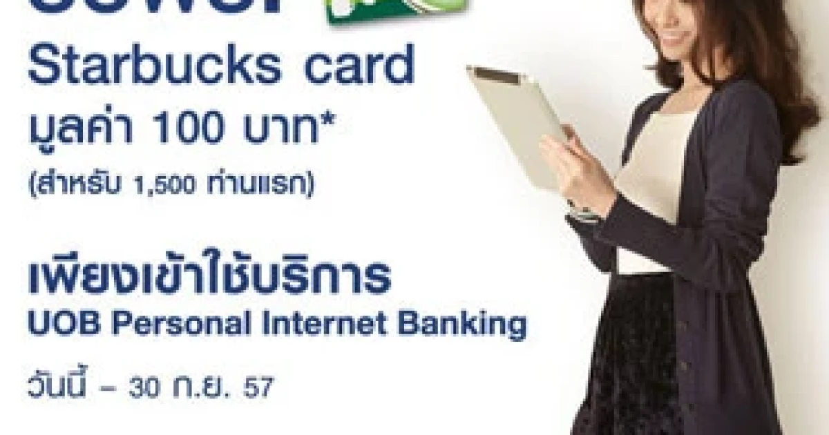 เพียงเข้าใช้บริการ UOB Personal Internet Banking รับฟรี! Starbucks card มูลค่า 100 บาท (สำหรับ 1,500 ท่านแรก)