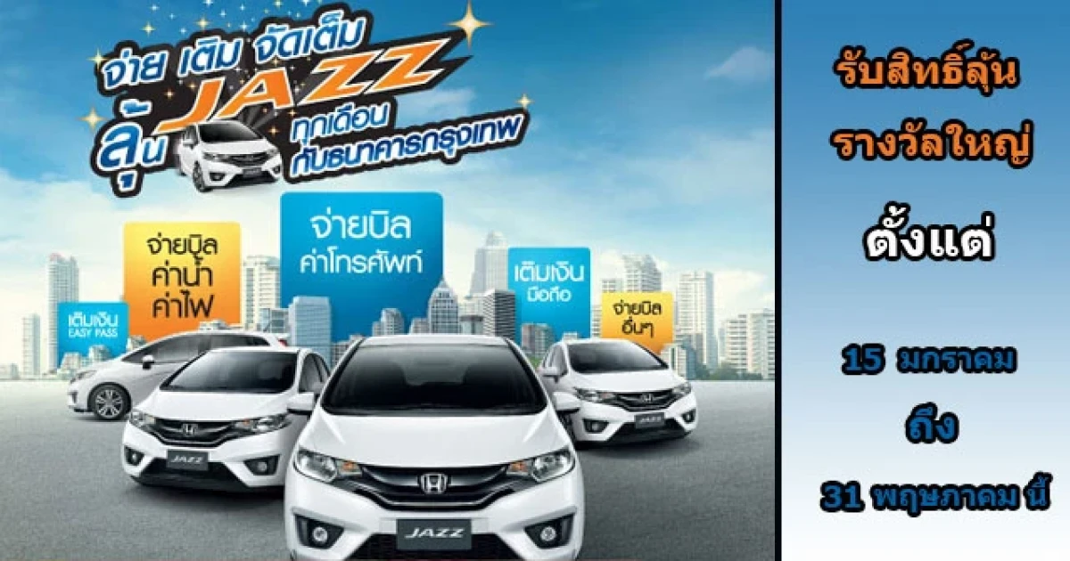 จ่าย เติม จัดเต็ม ลุ้น Jazz ทุกเดือน กับธนาคารกรุงเทพ
