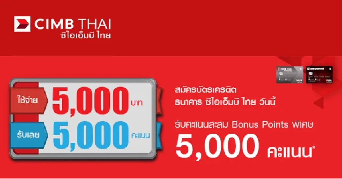 รับพิเศษ! Bonus Point 5,000 คะแนนสะสม เมื่อสมัครบัตรเครดิต ซีไอเอ็มบี ไทย