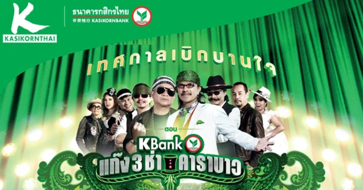 - คอนเสิร์ต เทศกาลเบิกบานใจ ตอน KBank แก๊ง 3 ช่า คาราบาว จะจัดขึ้นใน 49 จังหวัด ลูกค้าสามารถตรวจสอบวัน เวลา และสถานที่จัดงานได้จากสื่อในสาขาของธนาคารกสิกรไทย ทางเว็บไซต์ และ K-Contact Center โทร. 02-888-8888 ซึ่งสามารถเปลี่ยนแปลงได้ตามความเหมาะสม