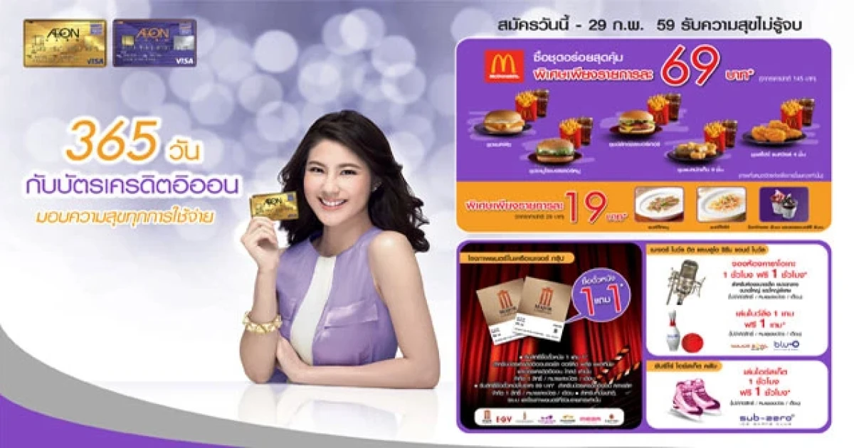 เงื่อนไข : ผู้ถือบัตรต้องชำระค่าชุดอาหารและเครื่องดื่มด้วยบัตรเครดิตอิออน จำกัด 3 สิทธิ์ /ท่าน /วัน โดยจำกัดจำนวนสิทธิ์ชุดอร่อยสุดคุ้ม 15,000 สิทธิ์/เดือน และแมคโจ๊ก, ไอศกรีมซันเด 10,000 สิทธิ์/เดือน สงวนสิทธิ์เฉพาะสาขาที่ร่วมรายการและไม่รวมการใช้จ่ายผ่านช่องทาง Delivery และ Drive Thru ที่แมคโดนัลด์ทุกสาขา โปรดตรวจสอบเงื่อนไขและรายละเอียดต่างๆ เพิ่มเติม ณ จุดขาย หรือสื่อประชาสัมพันธ์อื่นๆ