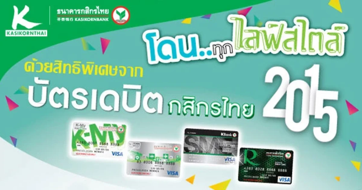 โดนทุกไลฟ์สไตล์ ด้วยสิทธิพิเศษจากบัตรเดบิตกสิกรไทย ประจำปี 2558 รวมสิทธิพิเศษทั้งดูหนังในเครือ SF ทุกเรื่อง ทุกรอบ ในราคา 100 บาท (จำกัด 2 ที่นั่ง/บัตร/เดือน), ซื้อชุดอร่อยสุดคุ้มที่ McDonald's ในราคา 100 บาท (จำกัด 1 ชุด/บัตร/เดือน) และสะสม 1,000 พอยท์ แลก 100 บาท ด้วยการลงทะเบียนสะสมแต้มและแลกของรางวัล (25 บาท = 1 คะแนน)
