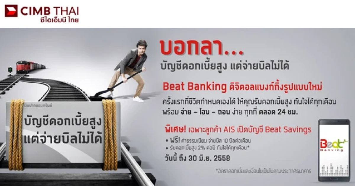 พิเศษ! เปิดบัญชี Beat Savings รับดอกเบี้ยสูง 2% ต่อปี จากซีไอเอ็มบี ไทย