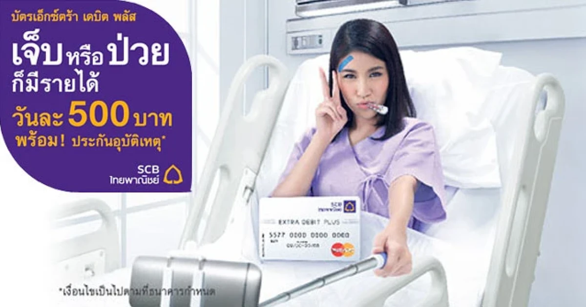 บัตรเอ็กซ์ตร้า เดบิต พลัส เจ็บหรือป่วยก็มีรายได้ วันละ 500 บาท พร้อม! ประกันอุบัติเหตุ ... จาก SCB