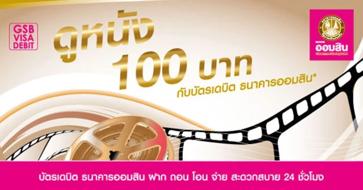 บัตรเดบิตจากธนาคารออมสิน พร้อม ฝาก ถอน โอน จ่าย สะดวกสบายตลอด 24 ชั่วโมง มอบสิทธิพิเศษสุดคุ้ม! ให้คุณได้ดูหนังเพียง 100 บาท