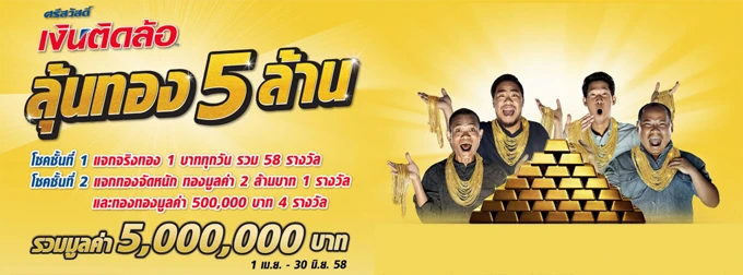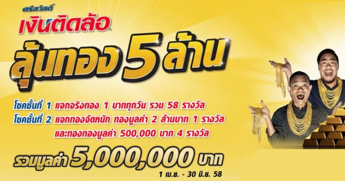 - ดูกติกาและเงื่อนไขเพิ่มเติม คลิก ศรีสวัสดิ์ เงินติดล้อ ลุ้นทอง 5 ล้าน