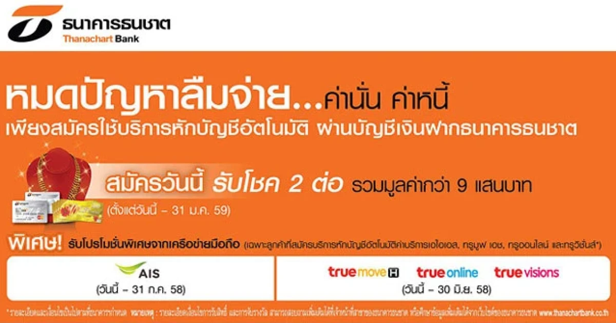 รับโชค 2 ต่อ เพียงสมัครใช้บริการหักบัญชีอัตโนมัติผ่านบัญชีเงินฝาก... จากธนชาต