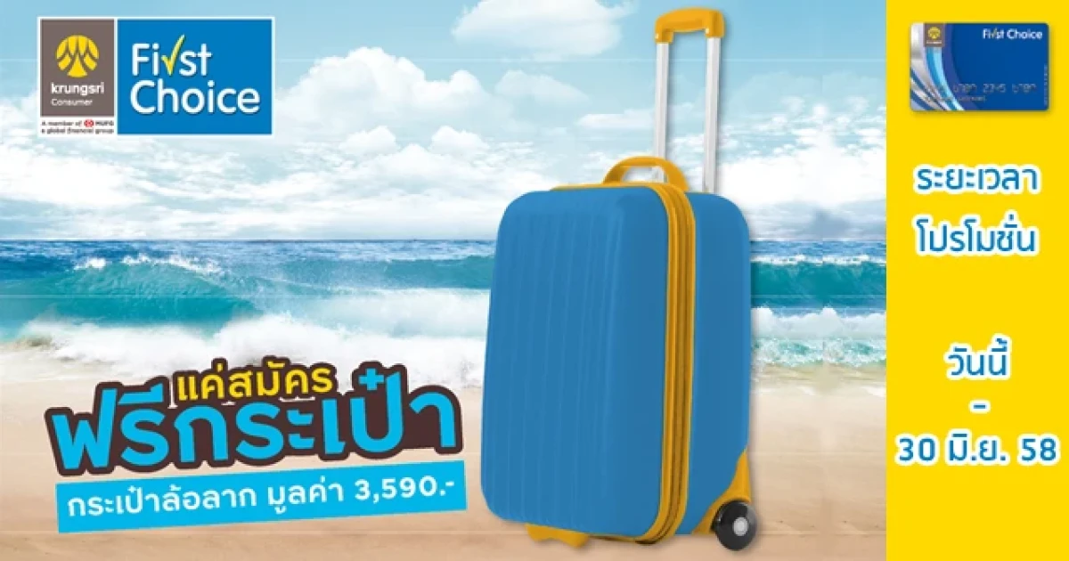 สมัครบัตร กรุงศรีเฟิร์สช้อยส์ ฟรี! กระเป๋าล้อลาก มูลค่า 3,590 บาท