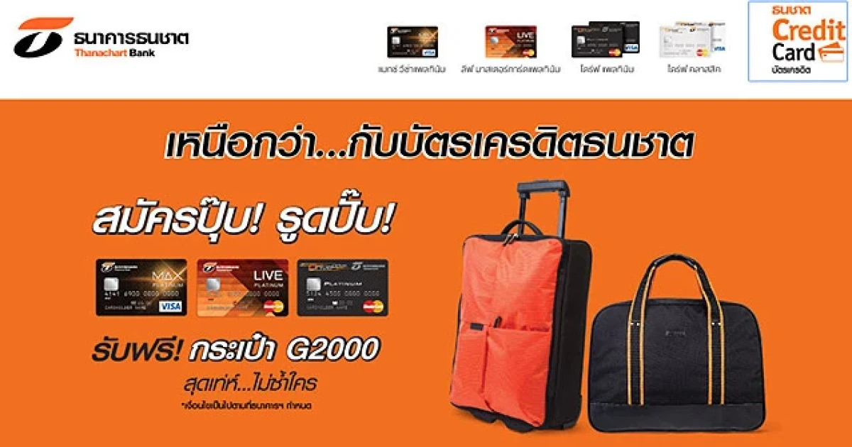 สมัครปุ๊บ! รูดปั๊บ! รับฟรี กระเป๋า G2000 สิทธิพิเศษเฉพาะสมัครบัตรเครดิตธนชาต