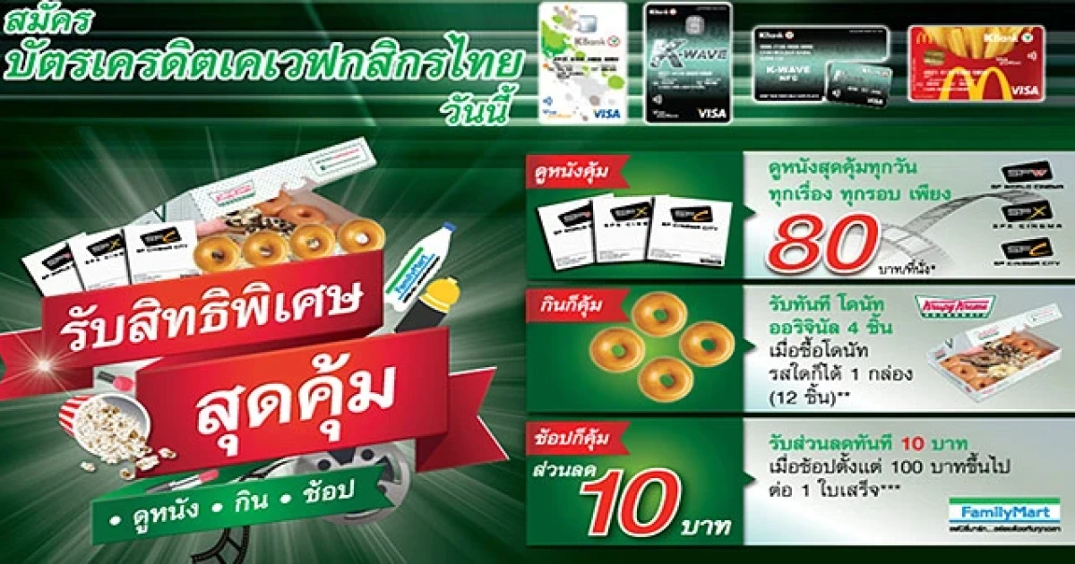 สมัครบัตรเครดิตเคเวฟกสิกรไทยวันนี้ รับสิทธิพิเศษสุดคุ้ม ดูหนัง-กิน-ช้อป