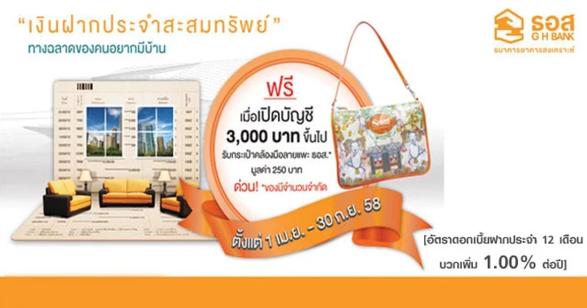 รับฟรี ! "กระเป๋าคล้องมือลายแพะ ธอส." เมื่อเปิดบัญชีเงินฝากประจำสะสมทรัพย์ ตั้งแต่ 3,000 บาทขึ้นไป ตั้งแต่วันนี้ - 30 กันยายน 2558