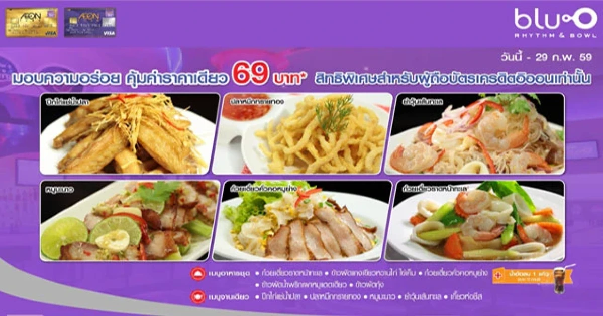 บัตรฯ อิออน มอบความอร่อย คุ้มค่าราคาเดียว 69 บาท สิทธิพิเศษที่ร้าน bluo